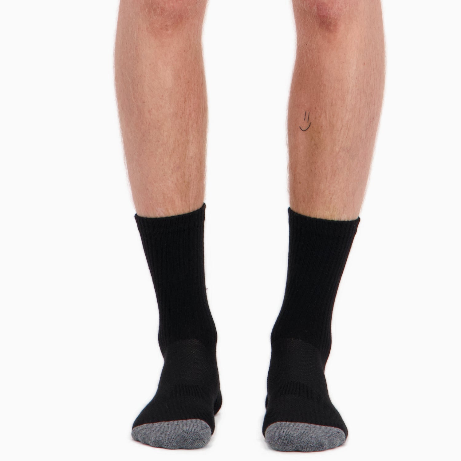 - Verstärkte Polsterung an Ferse und Zehen zur Stoßdämpfung und Reibungsminimierung.