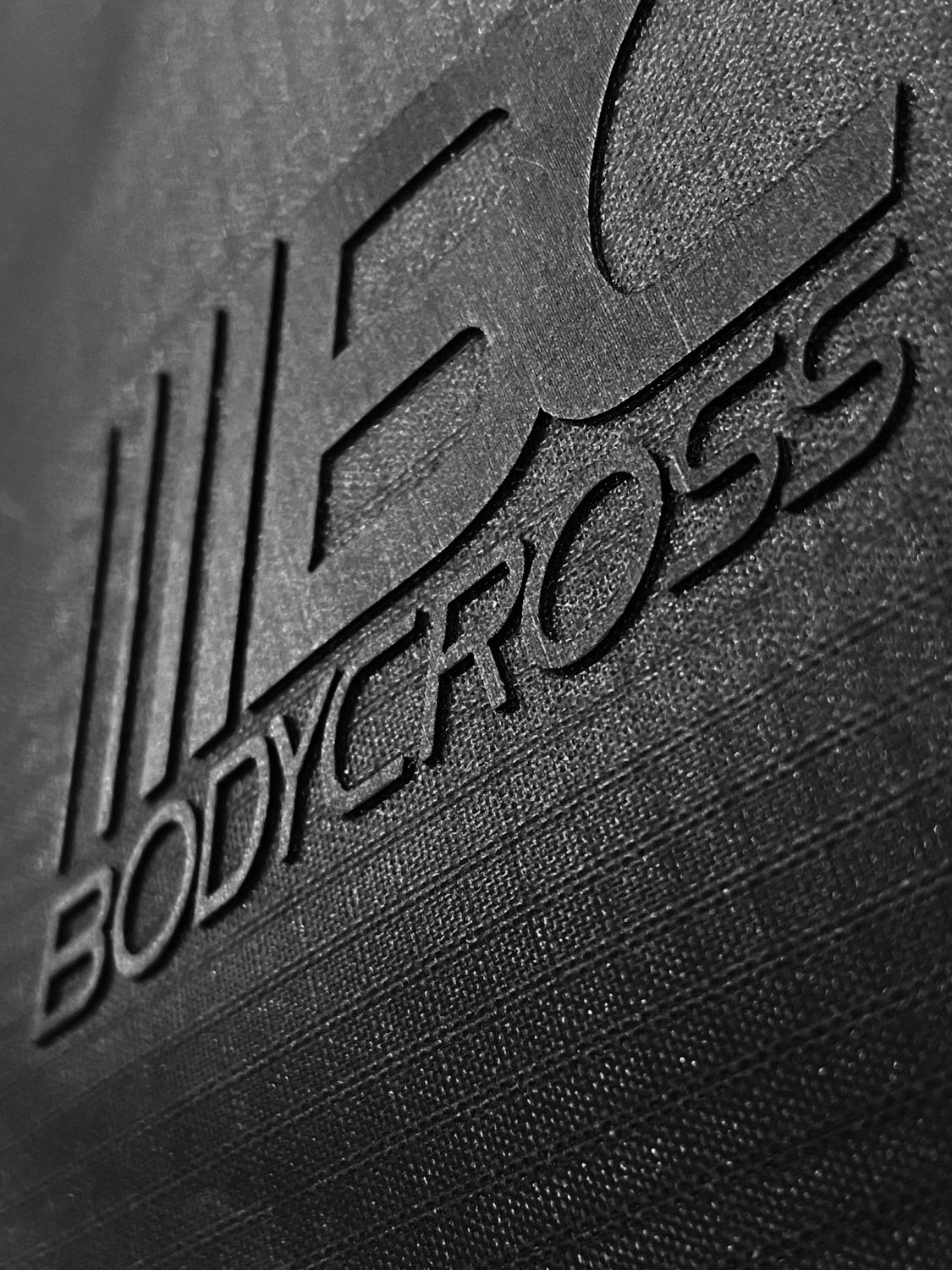 Das Bodycross-Logo ist in glänzendem Mattschwarz gehalten.