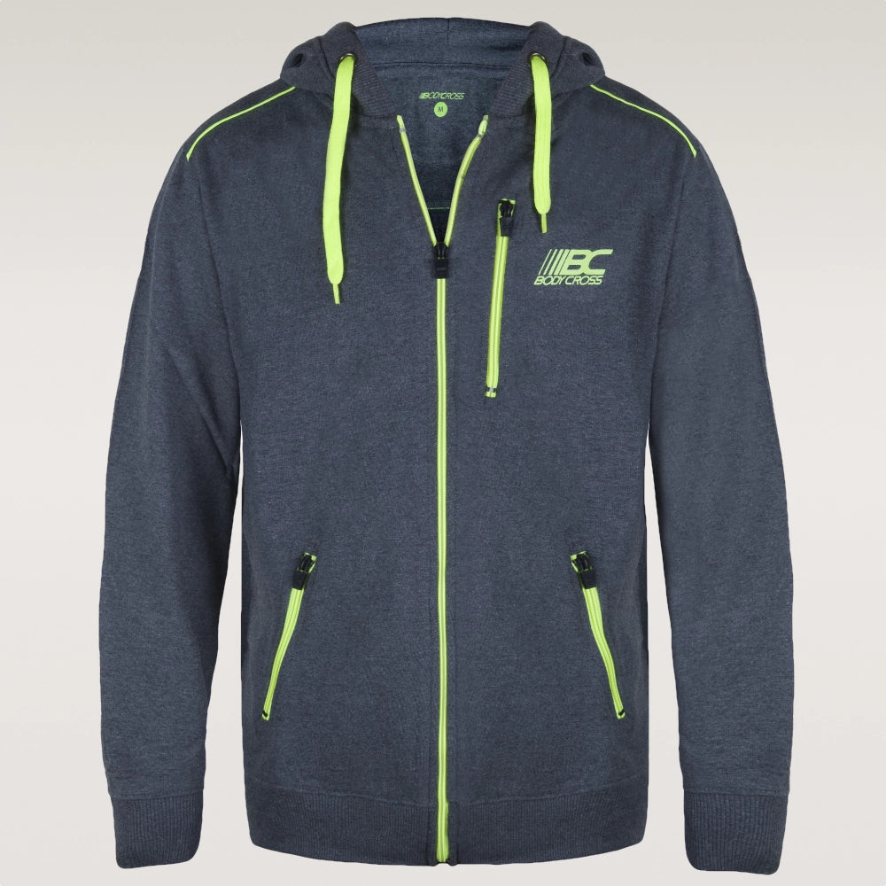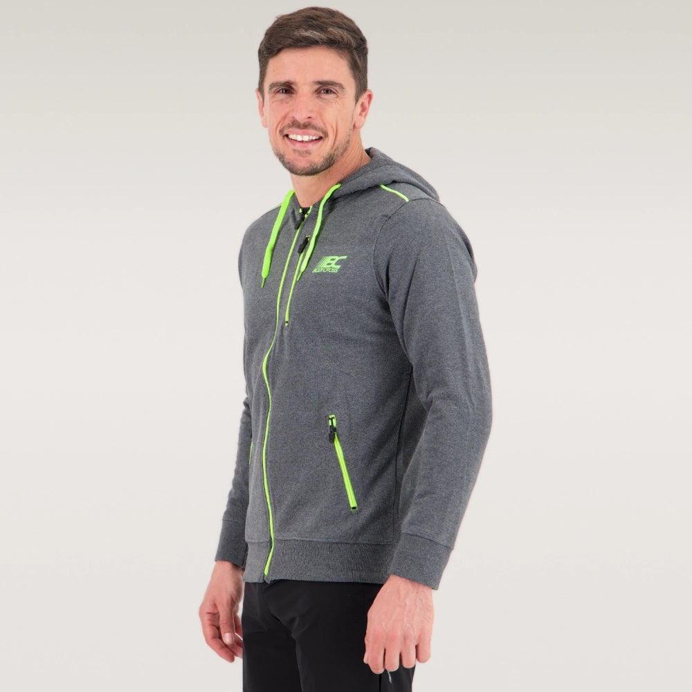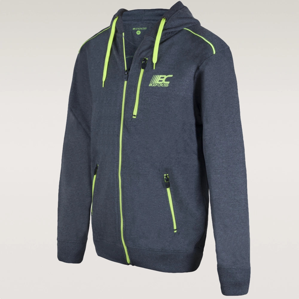 Jacke mit Reißverschluss und Kapuze, sehr bequem, wird oft tailliert getragen.