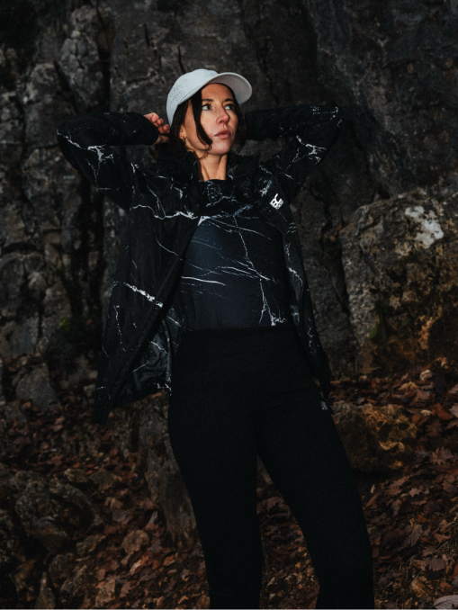 Its sublimated marble-effect pattern evokes the raw strength of natural elements and inner resilience. This organic and textured design embodies mastery, perseverance, and harmony, while providing a modern and urban aesthetic signature.