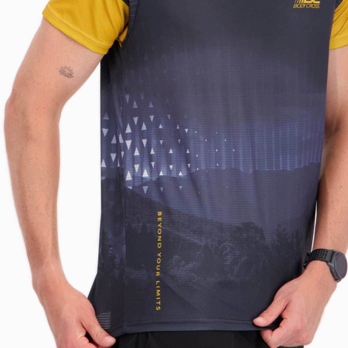 Affichez votre passion pour l’outdoor avec style pendant vos entraînements ou compétitions* grâce à notre nouveau T-shirt sublimé au motif montagne !