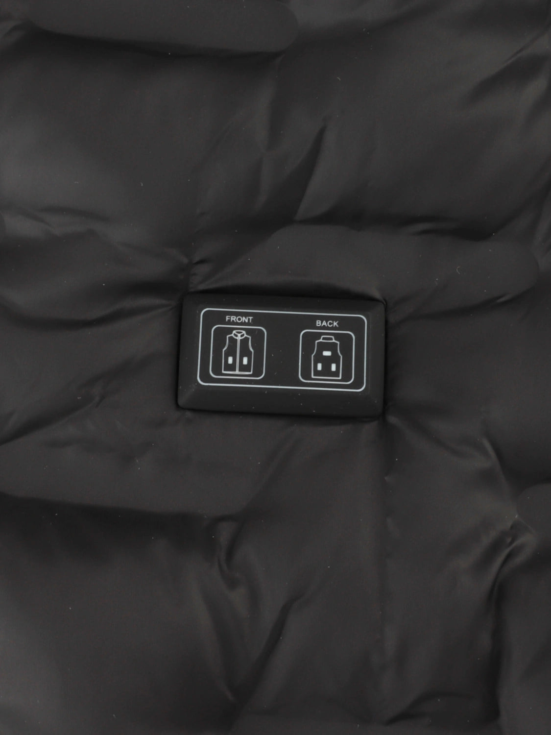 La fonction chauffante s'active par l'intermédiaire d'un bouton positionné en coeur-opposé qui permet d'activer ensemble ou séparément l'avant ou le dos du produit.